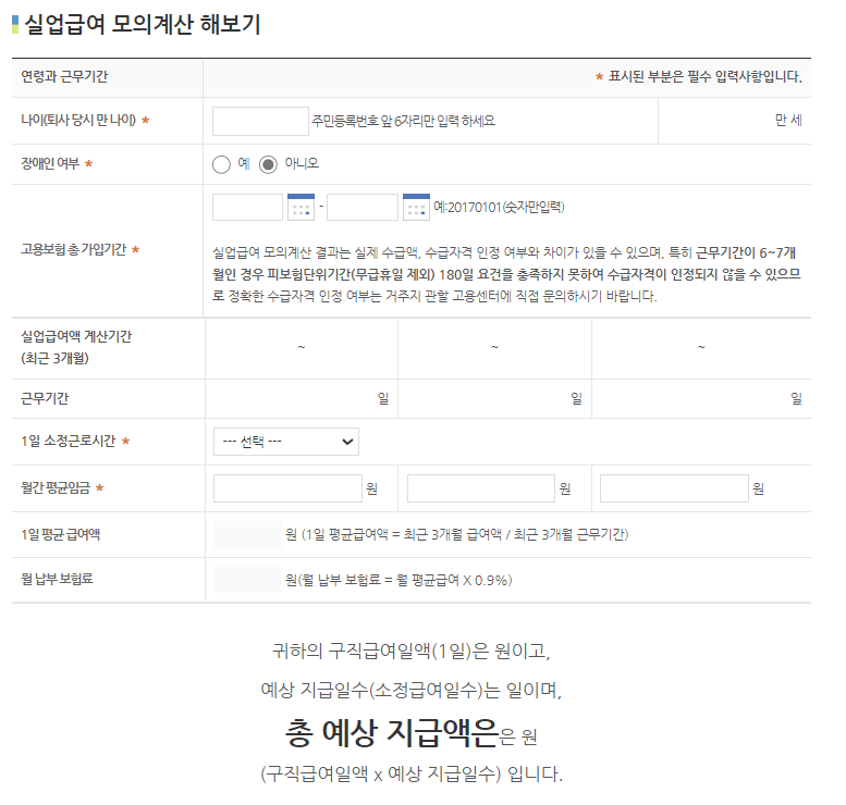 실업급여 모의 계산하기 -> 이미지를 클릭해보세요!