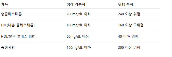 특히 LDL 콜레스테롤(나쁜 콜레스테롤)과 중성지방 수치가 높아지면, 혈관에 ‘기름때’가 끼듯 찌꺼기가 쌓여 동맥경화, 심근경색, 뇌졸중으로 이어질 수 있습니다.